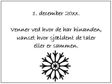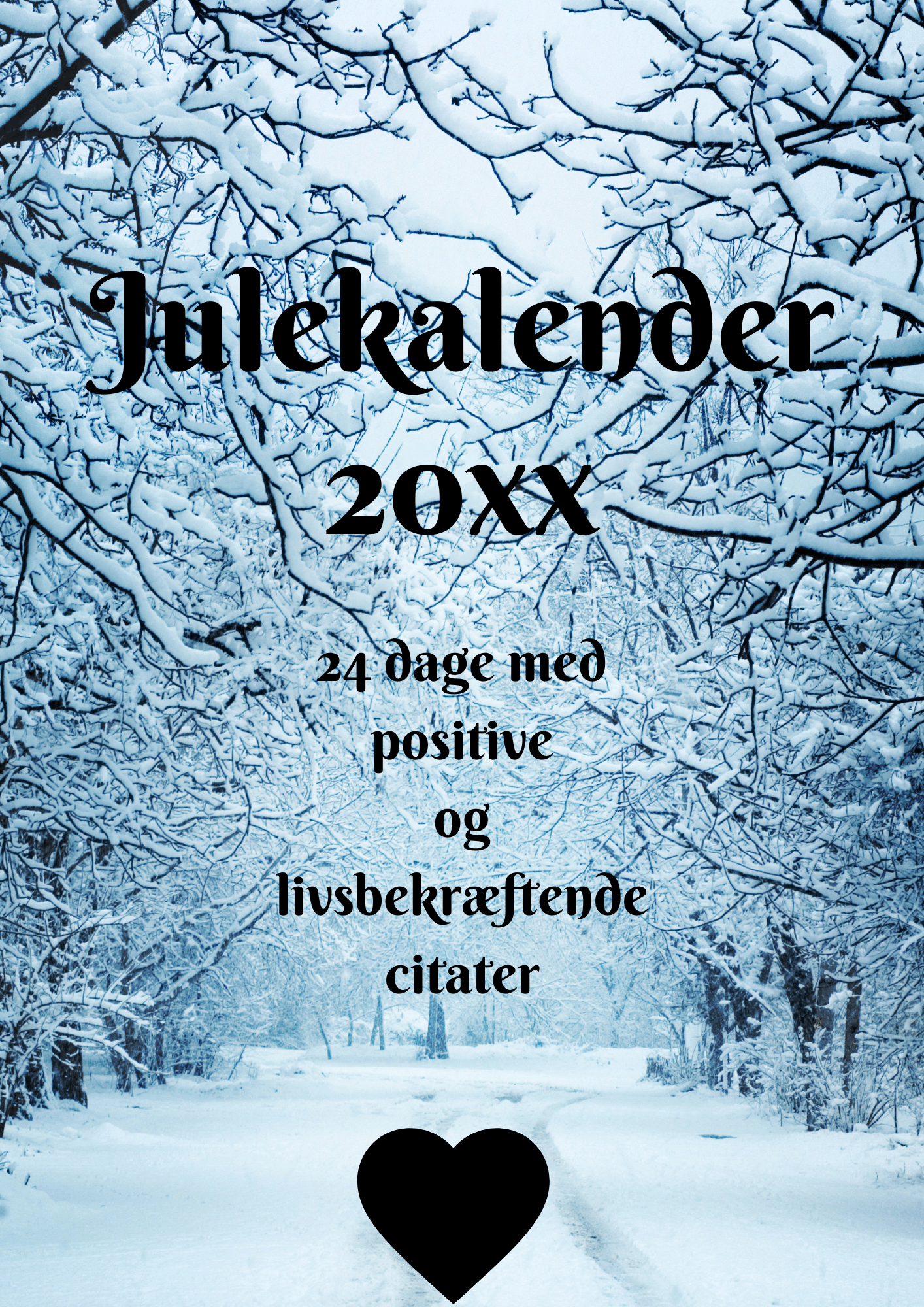 Du modtager en pdf-fil med en personlig hilsen, som du selv kan være med til at designe. Du kan fx bestemme hvem, der skal stå som modtager og afsender. Derudover er der 24 flotte vinterbilleder med nøje udvalgte citater, som du hver dag kan sende over en besked til modtageren. Du tager simpelthen bare et screenshot og sender billedet via sms eller messenger til modtageren.